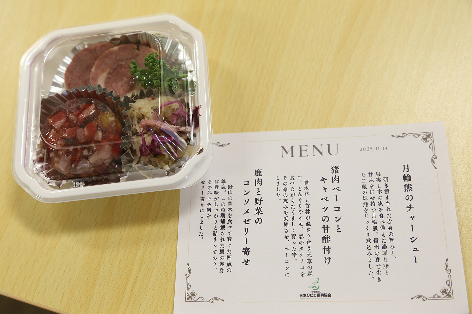施設支援や後進地域(北関東・東北)への支援強化、情報発信支援などを要請。薄友喜西会津町長にもご出席いただき、東北地域の3.11原発事故によるジビエ出荷制限の現状とジビエ振興について説明していただきました(写真上)。